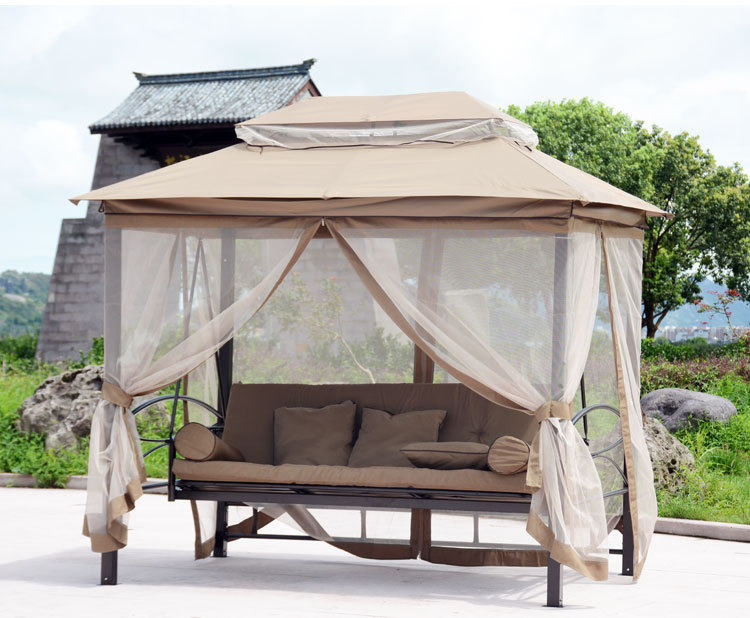 Outdoor Swing Bed Patio Garden Dome Top Gazebo with Netting